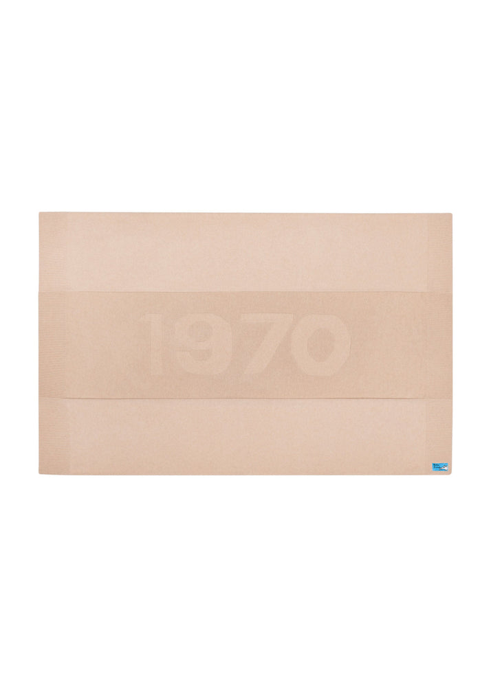 Wool blanket with embossed 1970 artwork, made in the United Kingdom.