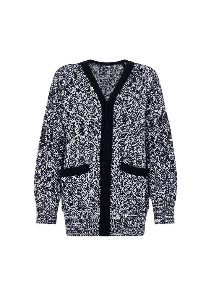 Chunky knit with side stripe and pocket detail. How Coco Chanel would wear The Duke of Westminster's clothes. I was influenced by this when I first started my label in the 90s, the total knitted look.