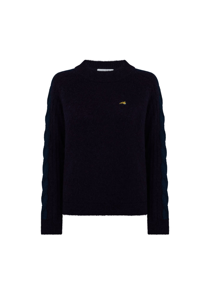 A high neck mohair cable knit jumper with raglan sleeves, designed to sit neatly to the body.