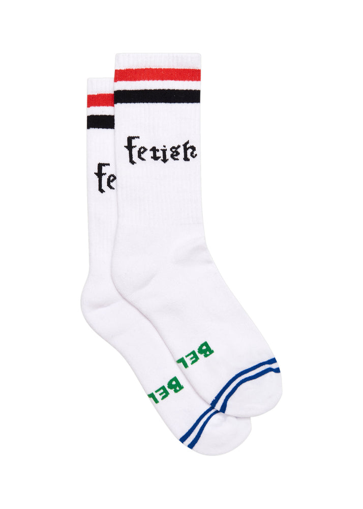 Socks with intarsia motifs and stripe details. Lightweight stretch cotton ribbed sports sock with fleece sole.