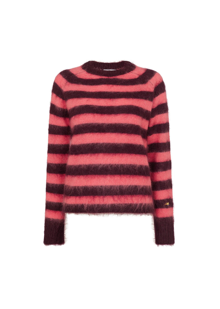 Mohair striped jumper with ribbed neck and sleeves, with dog embroidery on the sleeve.