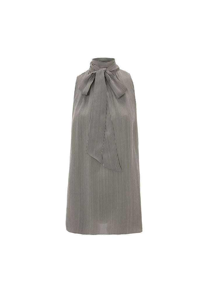 A sleeveless, floaty tank top with an ever-elegant neck tie. A slash open back is crossed over at the top for a hint of demurity. This time in a Cuba green, reminiscent of an Italian landscape.