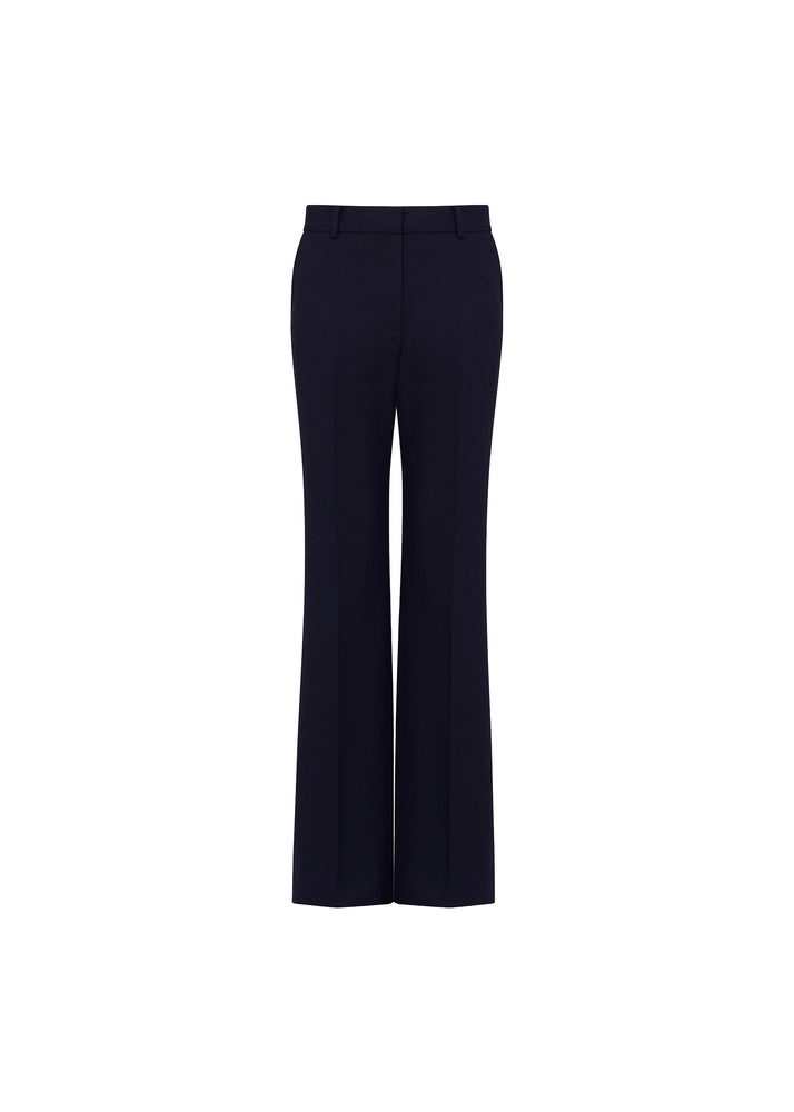 The David trousers sit comfortably true to the waist for a cinched, form-flattering shape. The thigh is relaxed and the leg is straight, with a slight kick-flare to elongate the leg.