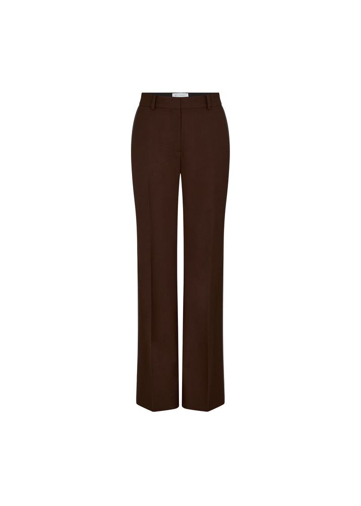 The David trousers sit comfortably true to the waist for a cinched, form-flattering shape. The thigh is relaxed and the leg is straight, with a slight kick-flare to elongate the leg.